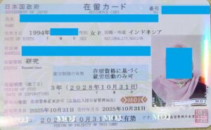 インドネシア人の在留資格「留学」から「研究」への在留資格変更で3年の許可を取得